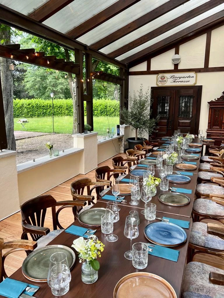 Ab sofort können die Tische auch im Garten platziert werden, um Ihre Veranstaltung im Freien zu einem besonderen Erlebnis zu machen. Genießen Sie den Charme der Natur, während Sie Ihre Gäste in einer entspannten und eleganten Umgebung bewirten.
